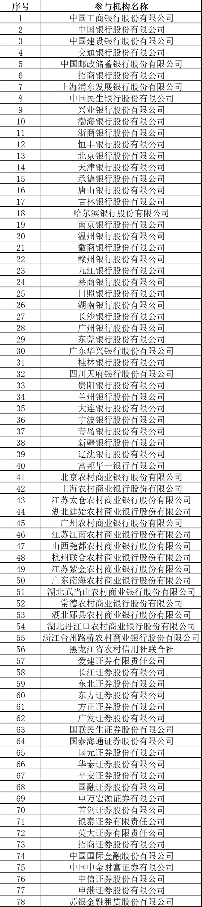 从具体名单来看,集中债券借贷业务的首批参与机构包括5家国有大行、7家股份行、27家城商行、1家外资法人银行、15家农商行、1家农信社、21家证券公司和1家金融租赁公司。