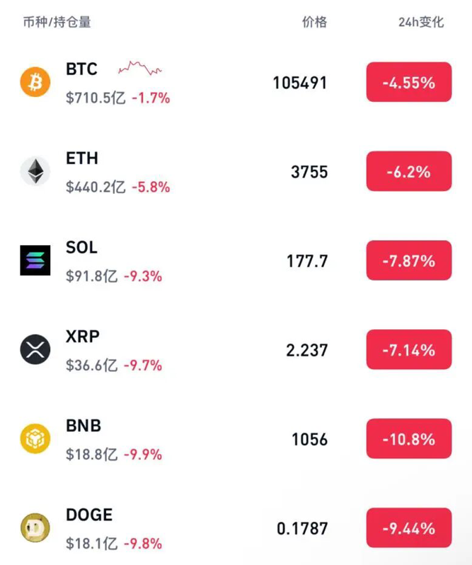 此外,狗狗币、BNB等均跌超9%。