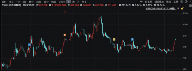 10月17日,老铺黄金收涨3.11%。
