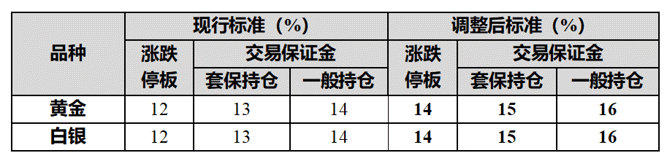 【导读】上期所:调整黄金和白银期货交易保证金比例和涨跌停板幅度
