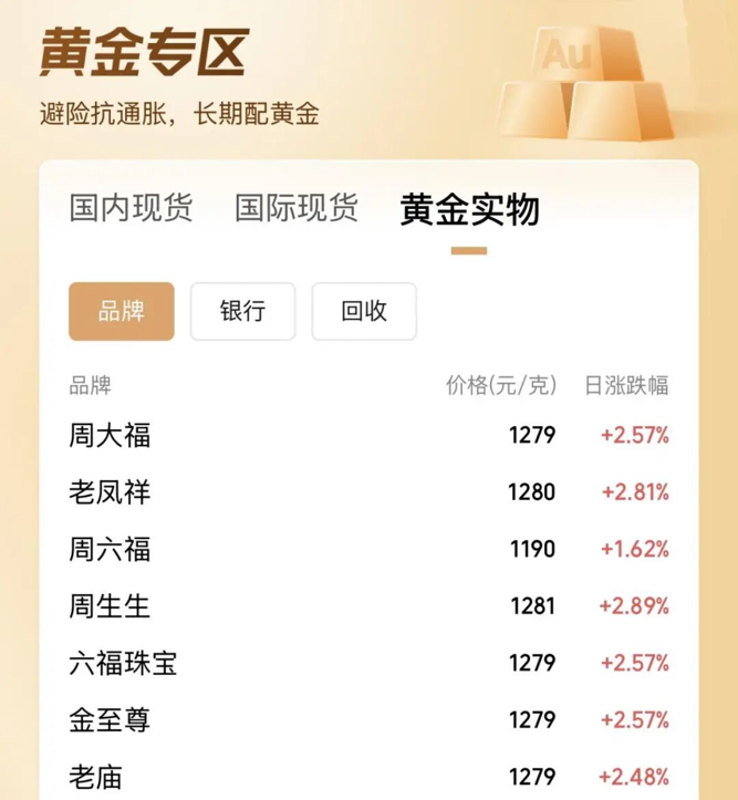 随着国际金价走高,国内黄金饰品品牌的足金首饰价格也站上1270元/克。
