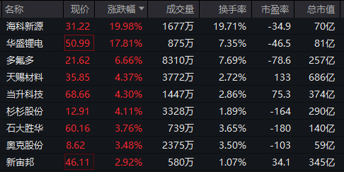 锂电池、固态电池概念股震荡走强,海科新源20%涨停,华盛锂电、多氟多、天赐材料等跟涨。