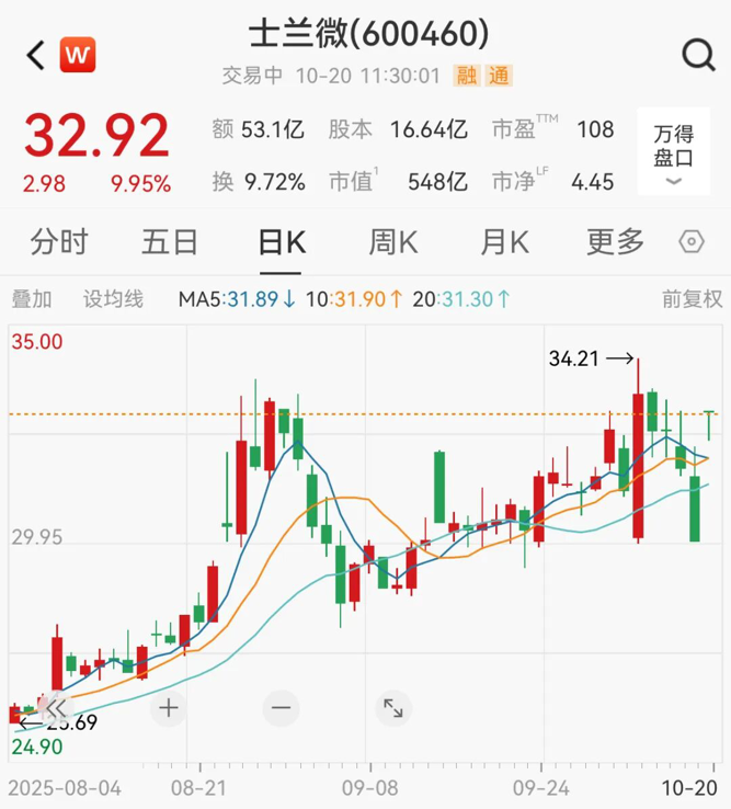 今日上午,半导体芯片板块走强。士兰微涨停,现报32.92元/股,最新市值为548亿元。
