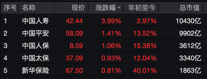 保险股全面飘红