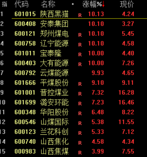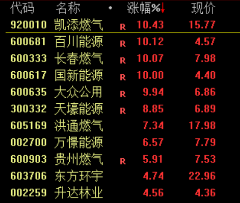 煤炭、燃气板块持续大涨,郑州煤电、国新能源等十余股涨停。
