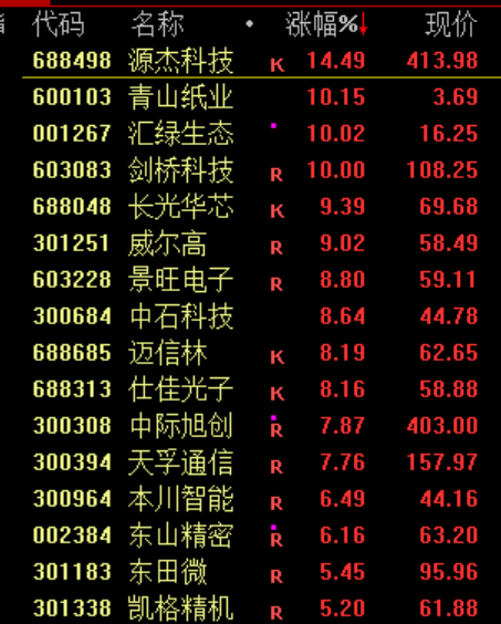 CPO等算力硬件股拉升,剑桥科技、汇绿生态等封板。