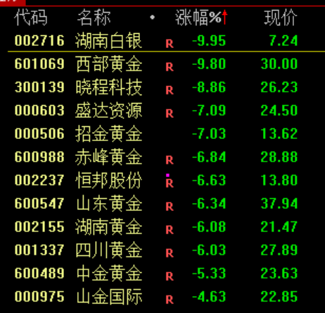 下跌方面,贵金属板块走势低迷,湖南白银、白银有色跌停。