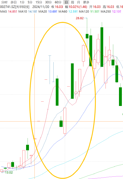 而在杨荣政参会并透露相关信息后,2024年11月20日—26日(含周末),光华科技连收5个涨停板。此后,公司股价继续大幅波动,多日出现暴涨暴跌行情。