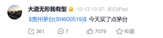 段永平多次公开表示,买股票就是买企业,对优质公司保持耐心。10月13日,段永平表示:“今天买了点茅台。”