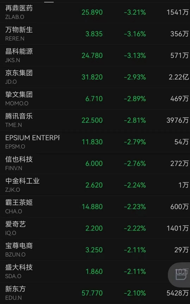 中概股下跌
