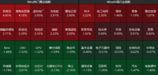 从板块来看,电网设备、海南、泛消费、煤炭等方向涨幅居前,稀土、半导体、游戏等板块震荡调整。