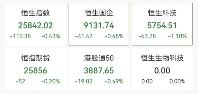 港股方面,三大指数悉数走低,恒生科技指数跌超1%,哔哩哔哩、华虹半导体、小鹏汽车跌幅居前。