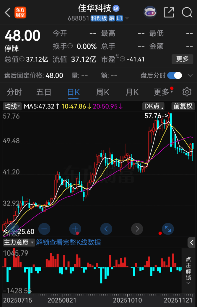 佳华科技自11月24日开市起停牌,计划自12月8日开市起复牌。截至11月21日收盘,佳华科技股价报48元/股,总市值为37.12亿元。