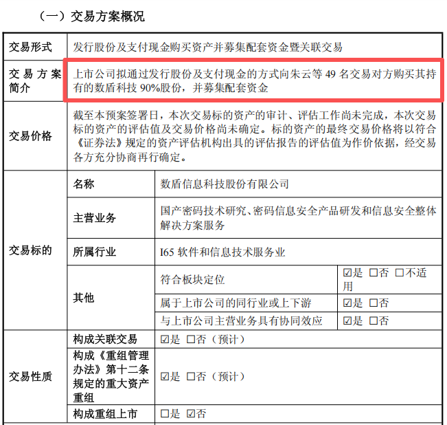 《交易预案》显示,佳华科技此次交易的交易对方包含朱云。目前,朱云是数盾科技的控股股东和实际控制人,合计控制数盾科技31.52%股份的表决权。