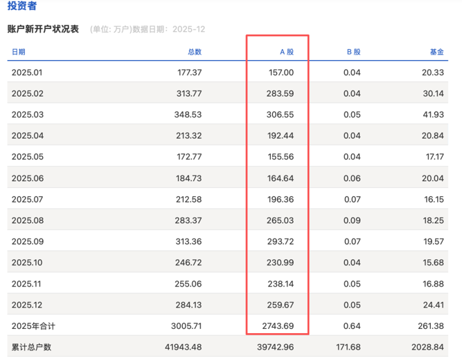 这一增长趋势在2025年得以延续,全年新开户2744万户,同比增长9.75%,并创下自2022年以来的年度新增开户数量新高。