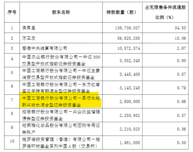 同时,公告显示,胡昕炜管理的汇添富消费行业混合基金已不在珀莱雅前十大流通股股东之列。