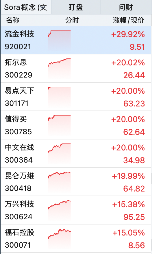 上午,AI应用再度爆发,Sora概念股强势拉升,多只概念股涨停。
