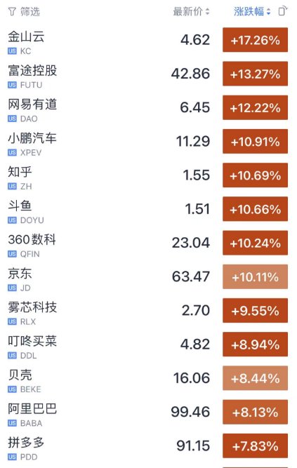 接棒白天的港股,美股开盘后,晚上中概股继续狂欢,恭喜抄底了中概互联的小伙伴了。