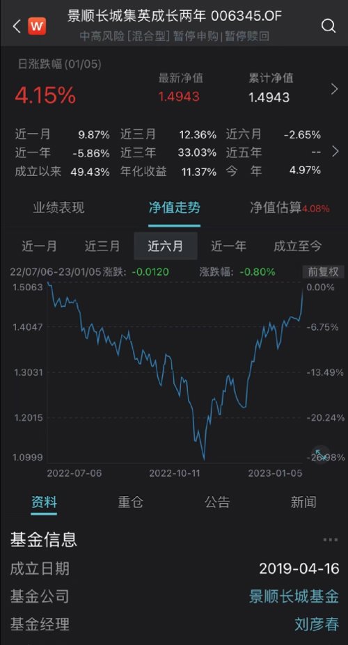 如知名基金经理刘彦春管理景顺长城集英成长两年去年11月以来净值增长率超30%,达到35.86%,尤其是1月5日一日涨幅就高达4.15%。所管理景顺长城绩优成长A的这段期间收益率也达到32.47%。