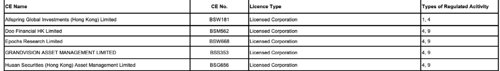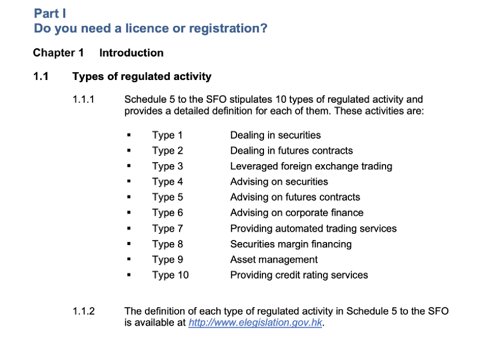 香港证监会的牌照和对应的业务类别。来源:香港证监会。