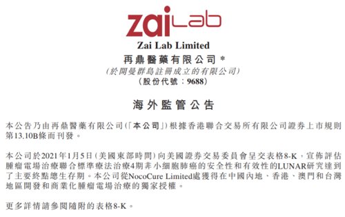 再鼎医药宣布,评估肿瘤电场治疗联合标准疗法治疗4期非小细胞肺癌的安全性和有效性的LUNAR研究达到了主要终点总生存期。公司从NovoCure Limited处获得在中国内地、中国香港、中国澳门和中国台湾地区开发和商业化肿瘤电场治疗的独家授权。