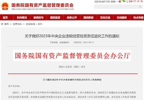关于做好2023年中央企业违规经营投资责任追究工作的通知