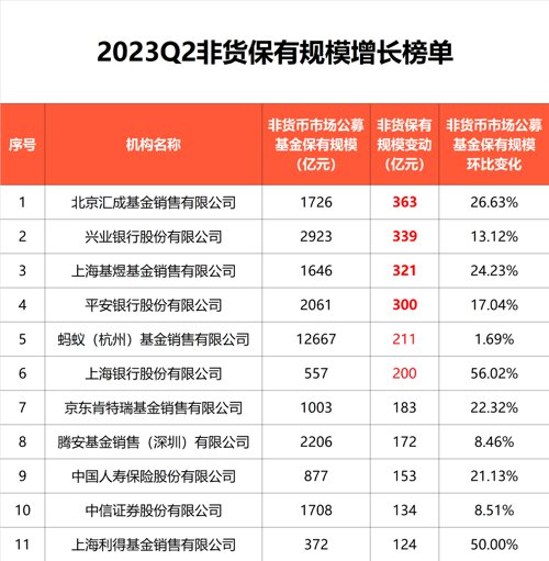 在二季度的非货保有规模增长榜单中,也频频出现银行、第三方的身影。