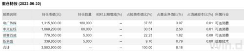 另一只绩优FOF平安养老2045五年由李正一和尚琼共同管理,截至二季度末,这只FOF的基金仓位为84.27%,较一季度末增加约2个百分点;股票的持仓占比为8.18%, 较一季度略有上降。从资产配置情况来看,该只FOF基金在二季度大幅增持海富通中证短融ETF、华夏恒生科技ETF、博时创新经济C三只基金。此外,二季度还新进了电广传媒、中文在线、德赛西威、新易盛4只个股。