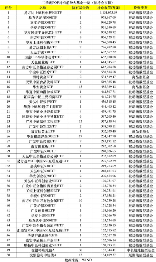 根据FOF前十大重基金进行梳理,Wind数据统计显示,FOF二季末重仓的50大基金中,被动指数型品占据绝对主力,达到45只,占比达九成。