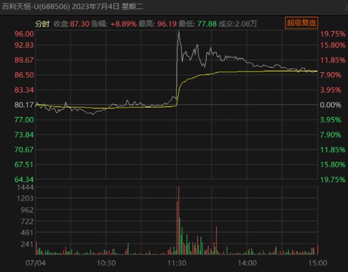7月4日下午,百利天恒一开盘股价就秒冲20%涨幅、千亿创新药龙头百济神州最高涨幅也达12%。