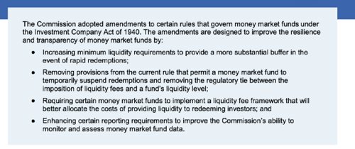 日前,美国证券交易委员会SEC宣布对《1940年投资公司法》下监管货基的部分规定的修订结果。尽管SEC意在提升货基市场的稳健性,不过行业机构认为这次SEC的改革很可能事与愿违。