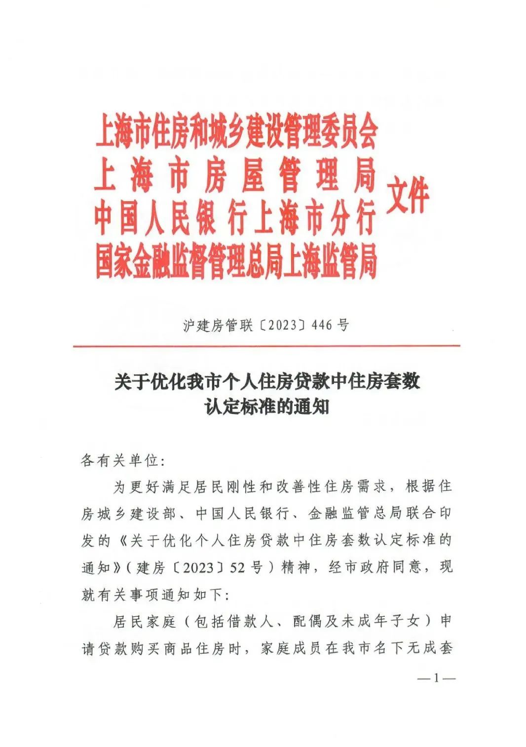 9月1日,上海市住房城乡建设管理委、市房屋管理局、人民银行上海市分行、国家金融监督管理总局上海监管局联合印发了《关于优化我市个人住房贷款中住房套数认定标准的通知》,执行购买首套房贷款“认房不用认贷”政策措施。