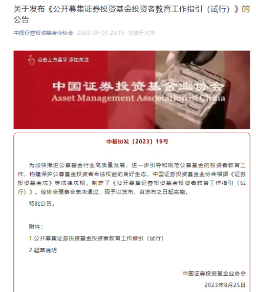 针对《指引》的发布,多家基金管理人和销售机构表示,中基协发布的投教工作指引,是我国公募基金领域投资者教育工作的纲领性指引文件,为投教工作指明了方向,为行业科学开展投教工作提供了借鉴和指导。