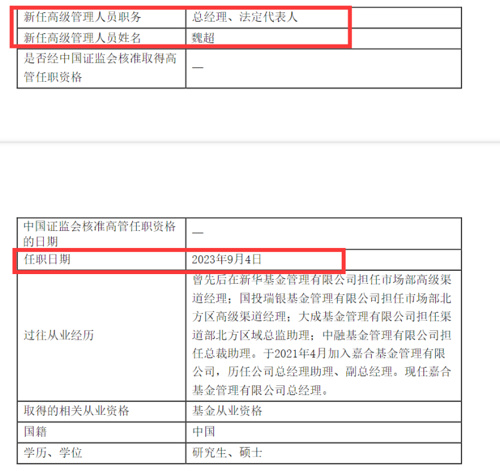 又有基金公司一把手变更。