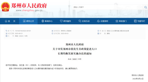 9月1日起,《郑州市优化生育政策促进人口长期均衡发展实施办法》全面启动实施。新政将婚嫁、生育、养育、教育一体考虑,综合施策,精准施策,有针对性地减轻群众生育、养育、教育负担,让更多家庭“想生、敢生、愿生”。