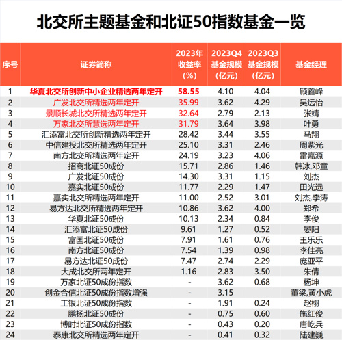去年末北证50指数一度大涨超50%,北交所主题基金逆袭夺冠,北交所市场的快速活跃也吸引了机构资金加码投向北交所。数据显示,截至2023年末,公募基金重仓北交所股票61只,刷新历史新高;重仓持股市值超33亿元,同比激增47%,也实现了快速增长。