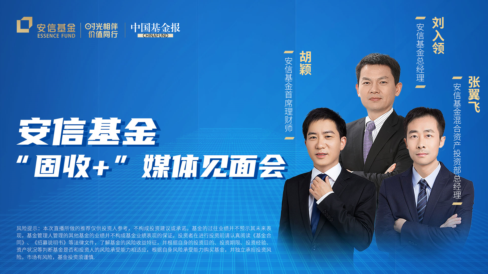 安信基金总经理刘入领、混合资产投资部总经理张翼飞、首席理财师胡颖与媒体深入交流,详解安信基金“固收+”是怎样炼成的。(基金投资有风险,请谨慎投资。本栏目嘉宾观点不代表中国基金报观点,不构成任何投资建议。)