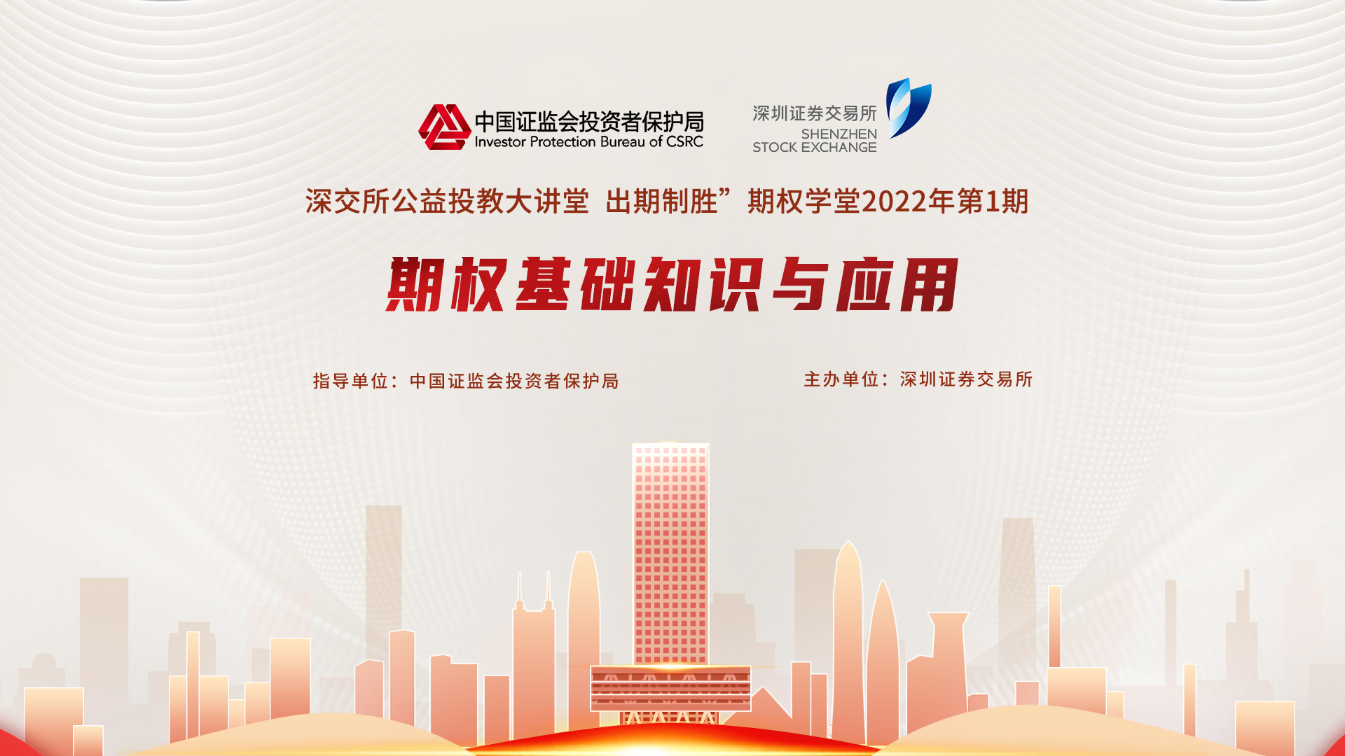 在中国证监会投资者保护局的指导下,深交所积极开展“理性认识市场投资量力而行”为主题的投资者教育宣传活动。本期为“出期制胜”期权学堂2022年第1期,邀请深圳证券交易所衍生品部执行经理奚伟鹏讲解期权基础知识与应用,欢迎感兴趣的投资者关注了解。