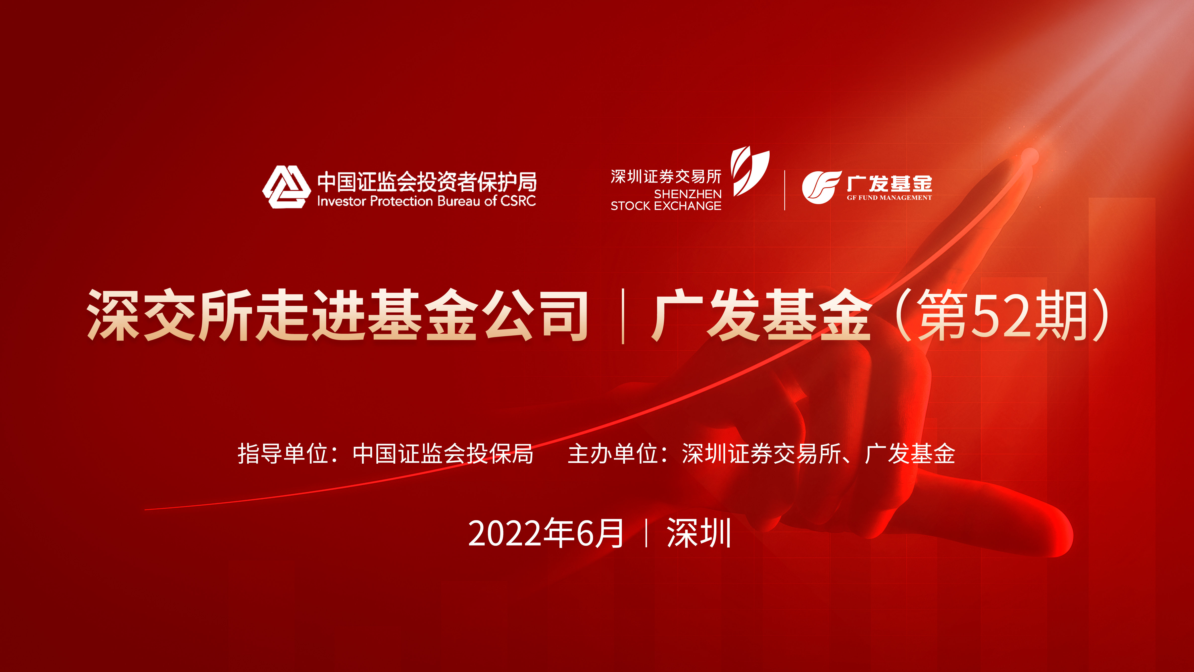 本次活动邀请到了广发基金副总经理张敬晗女士介绍公司情况,还邀请到了广发基金指数投资部基金总经理助理刘杰先生带来《美股大幅回调,全球科技龙头纳指100展望》、广发基金指数投资部基金经理夏浩洋先生带来《中概互联板块近期影响因素解读,另外,深交所基金管理部阿依波先生也将就《指数化投资与深交所基金市场》进行介绍。