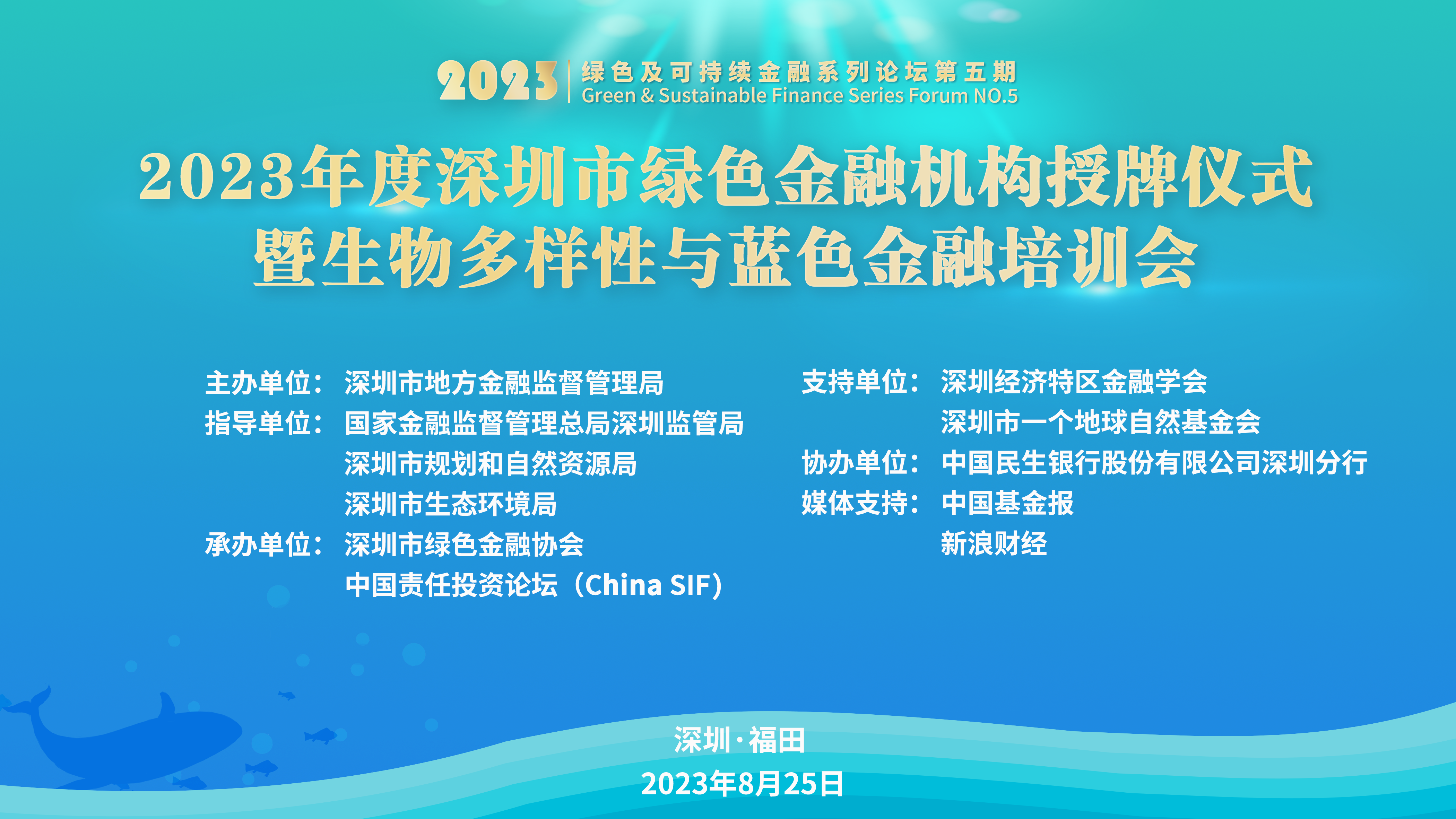 2023年7月,深圳市地方金融监督管理局联合中国人民银行深圳市分行和国家金融监督管理总局深圳监管局新认定8家绿色金融机构。受深圳市地方金融监督管理局委托,深圳市绿色金融协会将于2023年8月25日(星期五)组织“2023年度深圳市绿色金融机构授牌仪式暨生物多样性与蓝色金融培训会”。同时,培训会拟邀请政府部门、行业专家及国际组织代表,分享生物多样性与可持续蓝色金融的国际经验框架,交流银行业蓝色金融的实践经验,推动形成深圳市全球海洋中心城市的发展共识。