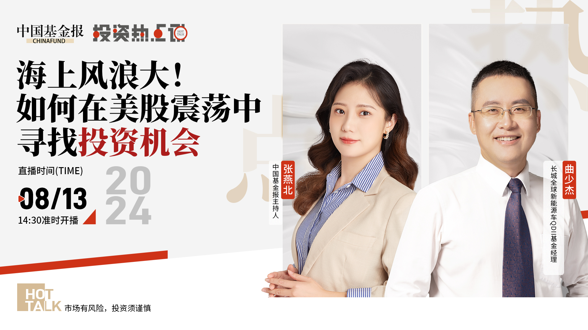 1、如何看待本轮全球市场震荡?原因何在?2、美联储9月降息概率飙升,如何影响投资?3、纳指、红利双双回调,倒车接人信号已现?(基金投资有风险,请谨慎投资。本栏目嘉宾观点不代表中国基金报观点,不构成任何投资建议。)
