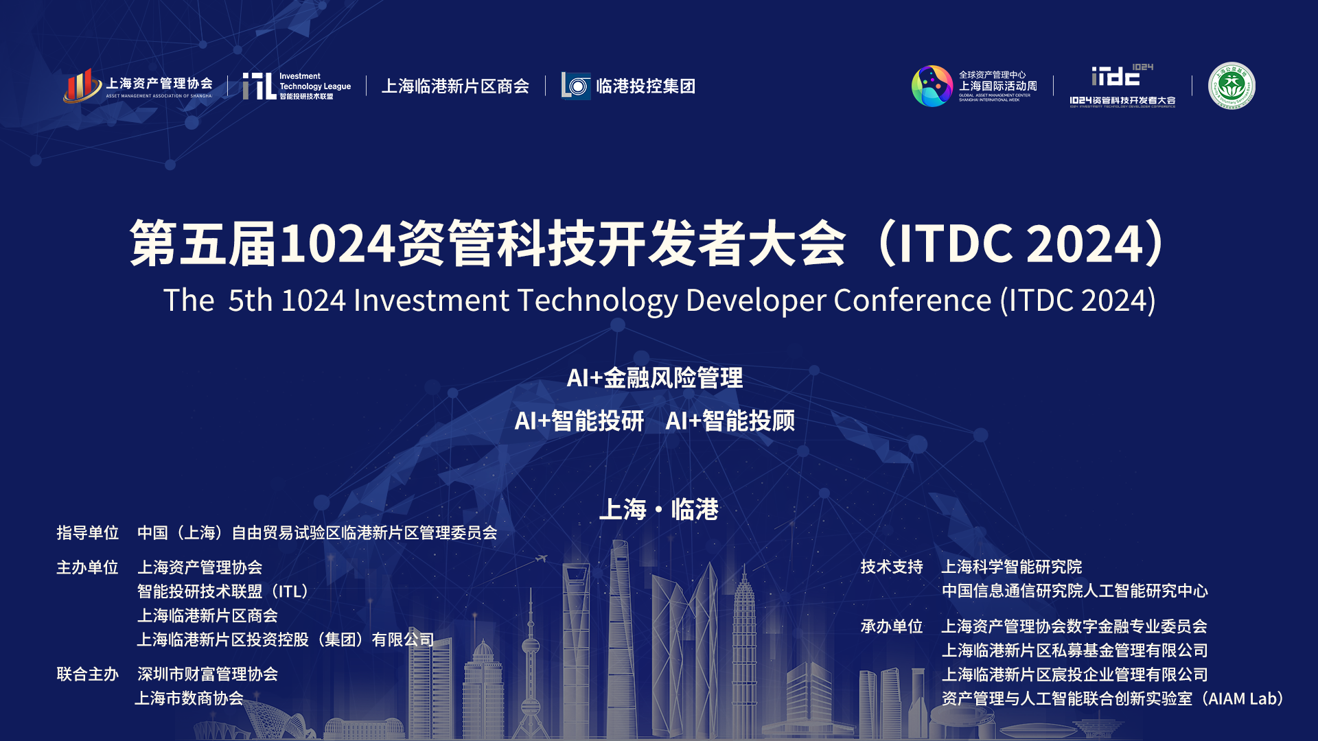 作为“全球资产管理中心上海国际活动周2024”压台活动,“第五届1024资管科技开发者大会”(简称“大会”),将于10月18日在“世界顶尖科学家论坛永久会场”(上海·临港中心)举办。本次大会由中国(上海)自由贸易试验区临港新片区管理委员会指导,上海资产管理协会、智能投研技术联盟(ITL)上海临港新片区商会、上海临港新片区投资控股(集团)有限公司主办,深圳市财富管理协会、上海市数商协会联合主办。大会聚焦人工智能在金融风险管理、投资顾问、投资研究以及产业数智化服务等领域的应用,旨在从数智化视角探讨资管行业与资本市场的良性发展。柴洪峰、杨强、肖京等数十位专家将致辞演讲与交流。