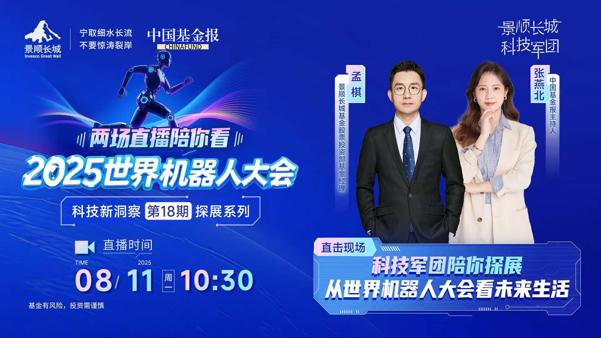 想提前解锁未来生活新图景?8月11日10:30锁定直播间,景顺长城基金股票投资部基金经理孟棋、中国基金报主持人张燕北,带你直击2025世界机器人大会现场,畅聊产业机遇。