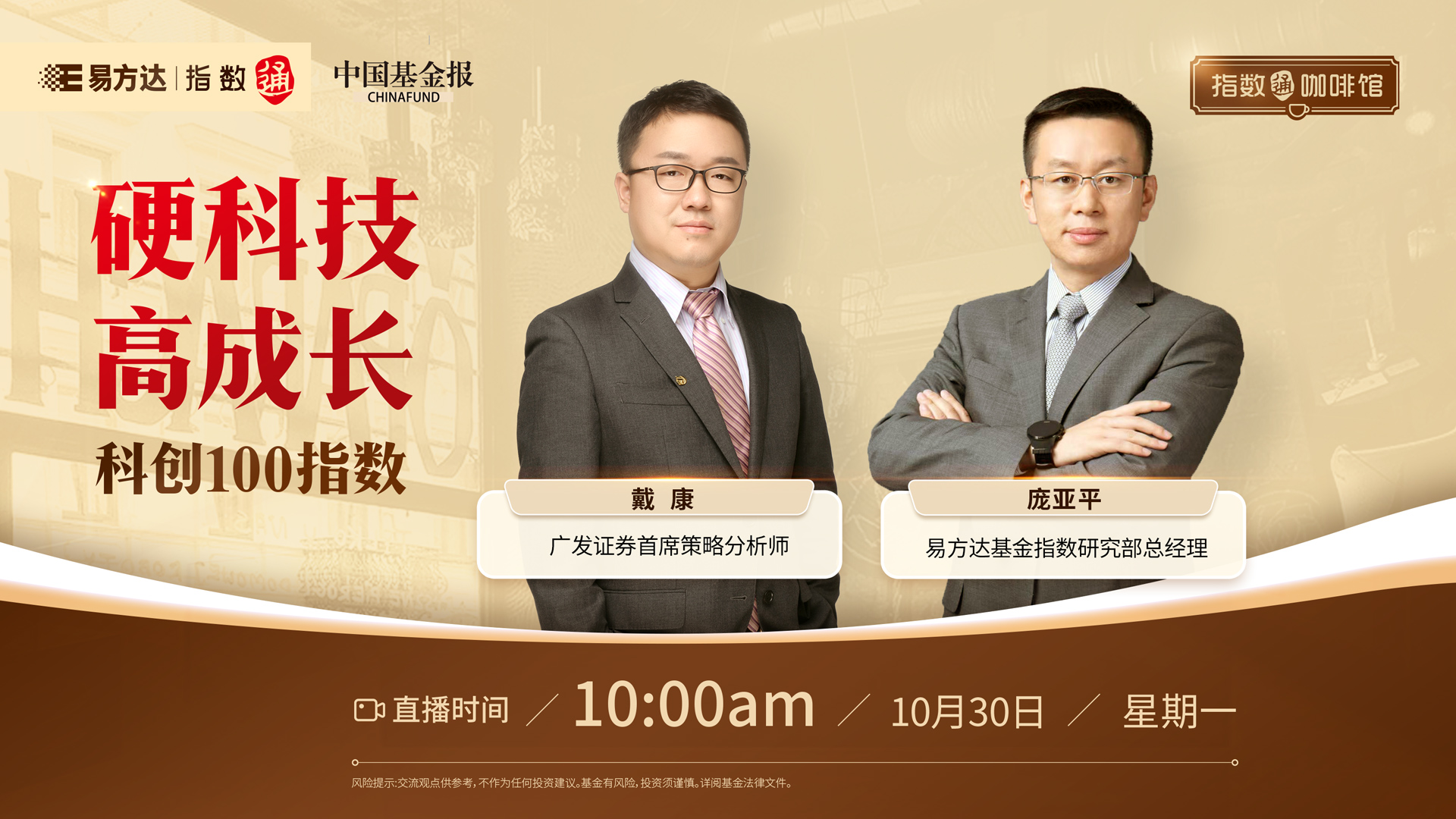 #直播预告# 易方达基金|【指数通咖啡馆】硬科技、高成长,科创100指数
