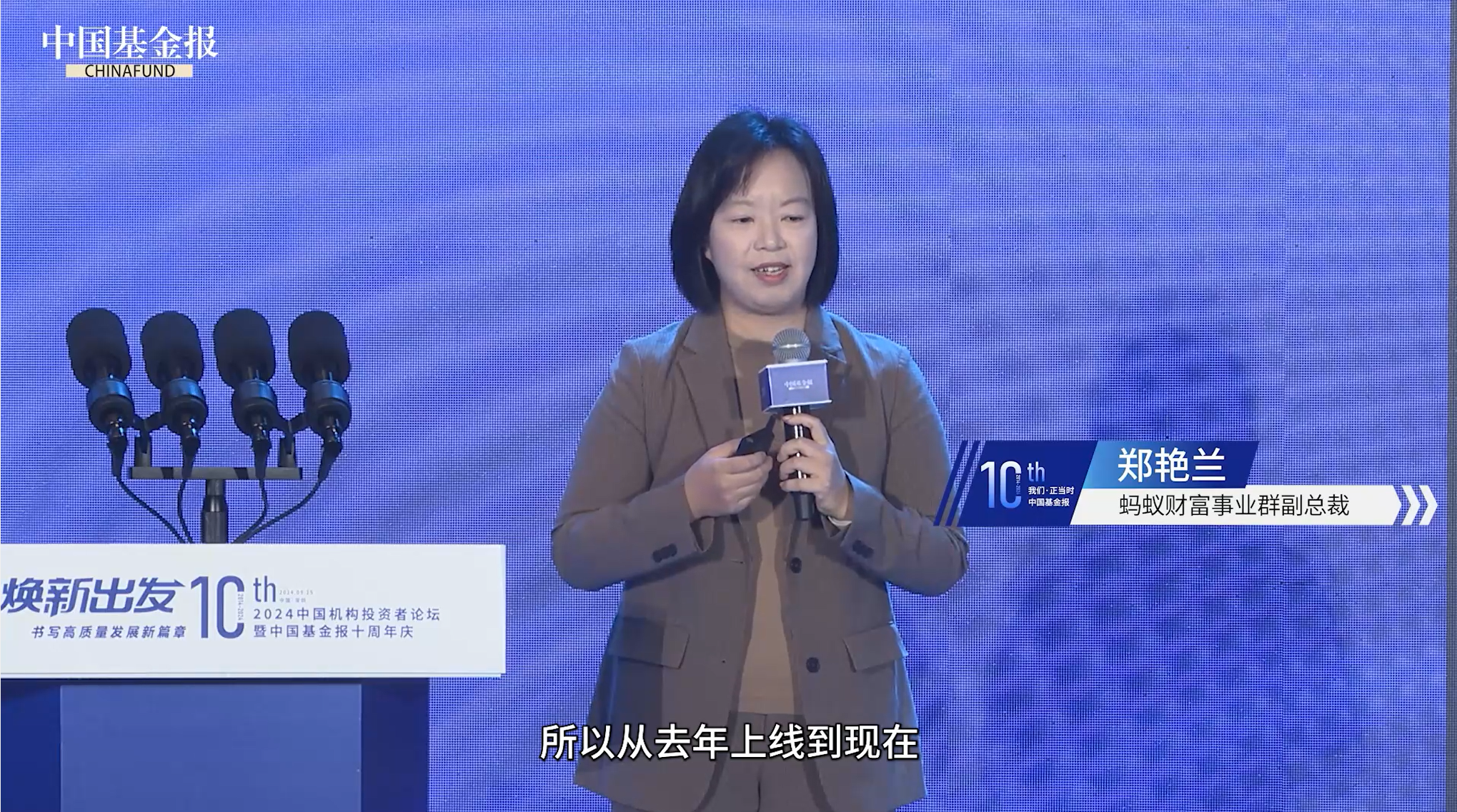#2024中国机构投资者论坛暨中国基金报十周年庆# 蚂蚁财富事业群副总裁郑艳兰:“正收益专区”产品上线至今百分之百达到了正收益