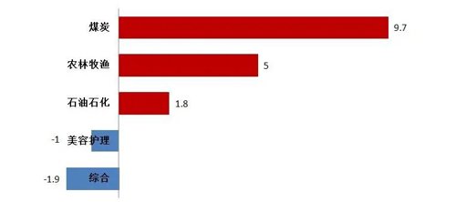 行业方面: 煤炭、农林牧渔、石油石化、交通运输、社会服务等行业表现相对较好,电子、国防军工、电力设备、机械设备、建筑材料等行业表现靠后。