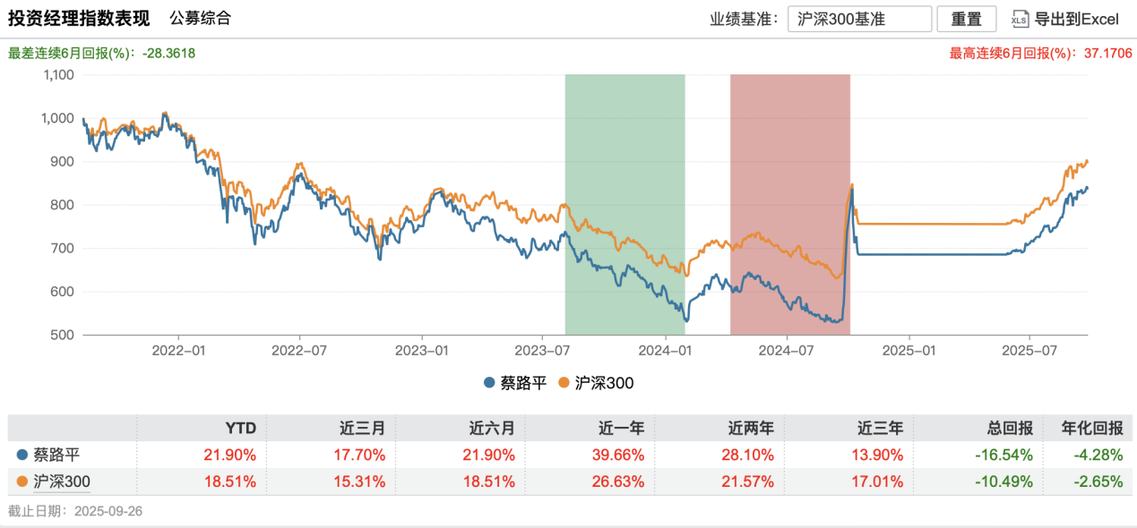 根据智君科技数据来看,自从蔡路平今年5月重新接管新产品以来,近一个月收益表现有限,区间收益达到31.50%,远超同业平均1.92%与沪深300指数3.53%的同期水平。