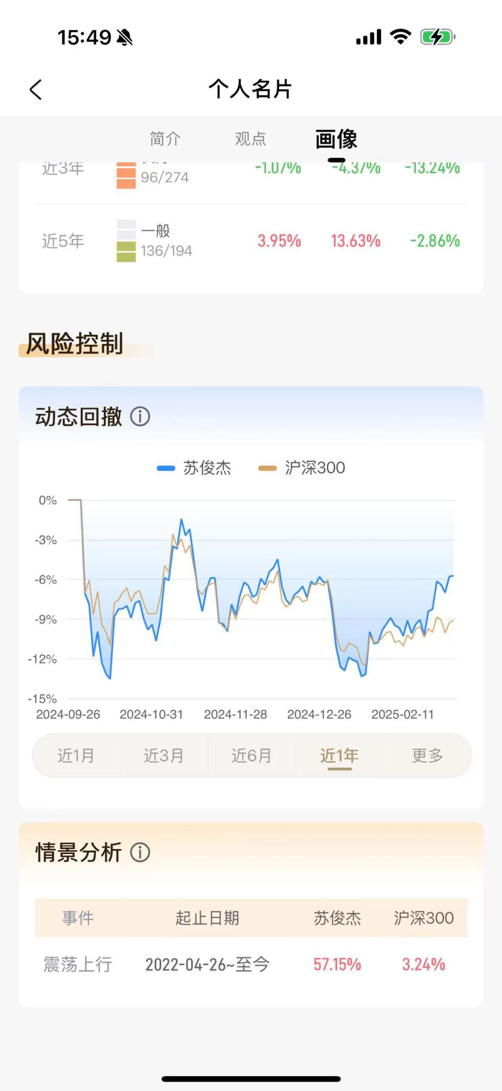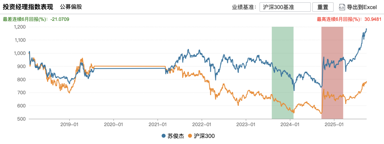据智君科技数据显示,近一年以来,苏俊杰整体的动态回撤趋势基本与沪深300指数相当。有两次动态回撤超过10%分别在2024年10月与2025年1月。值得注意的事,近半年以来,动态回撤水平相较沪深300显著降低。